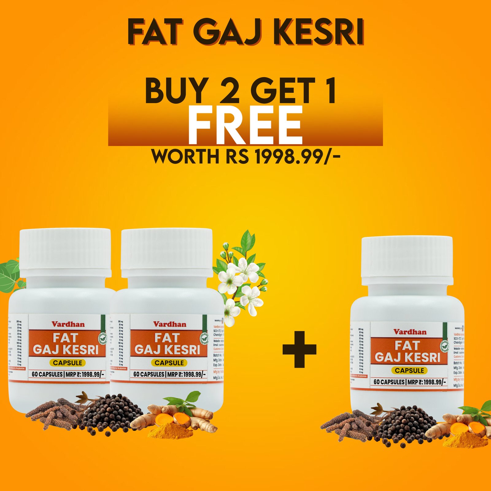 Fat Gaj Kesri is a carefully formulated blend designed to support weight loss and manage obesity. It contains 15 natural herbs and minerals, known for their health benefits and effectiveness in aiding weight management.